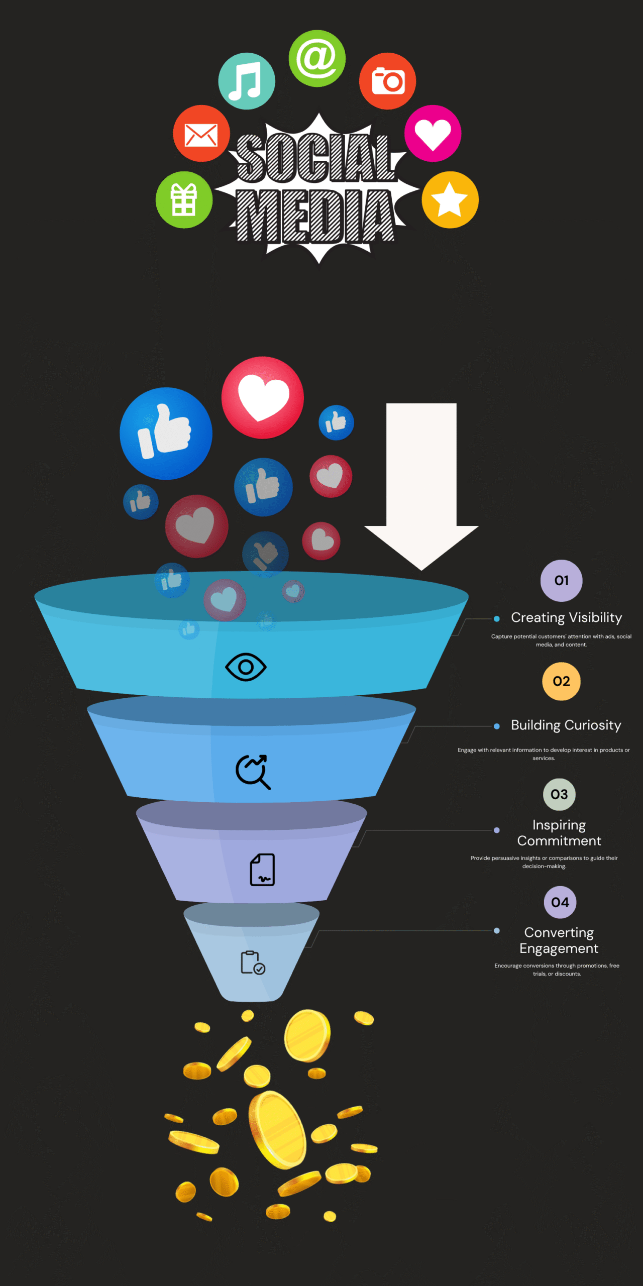 We define your sales funnel: Awareness → Engagement → Conversion → Loyalty.
